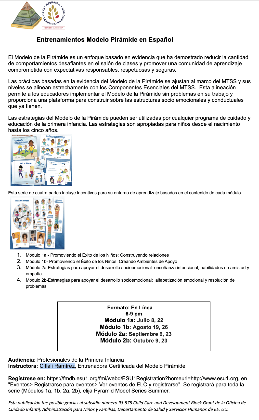 This four-part series will increase your confidence and competence in addressing challenging behaviors with young children. You will learn strategies based on the Teaching Pyramid Model which includes: